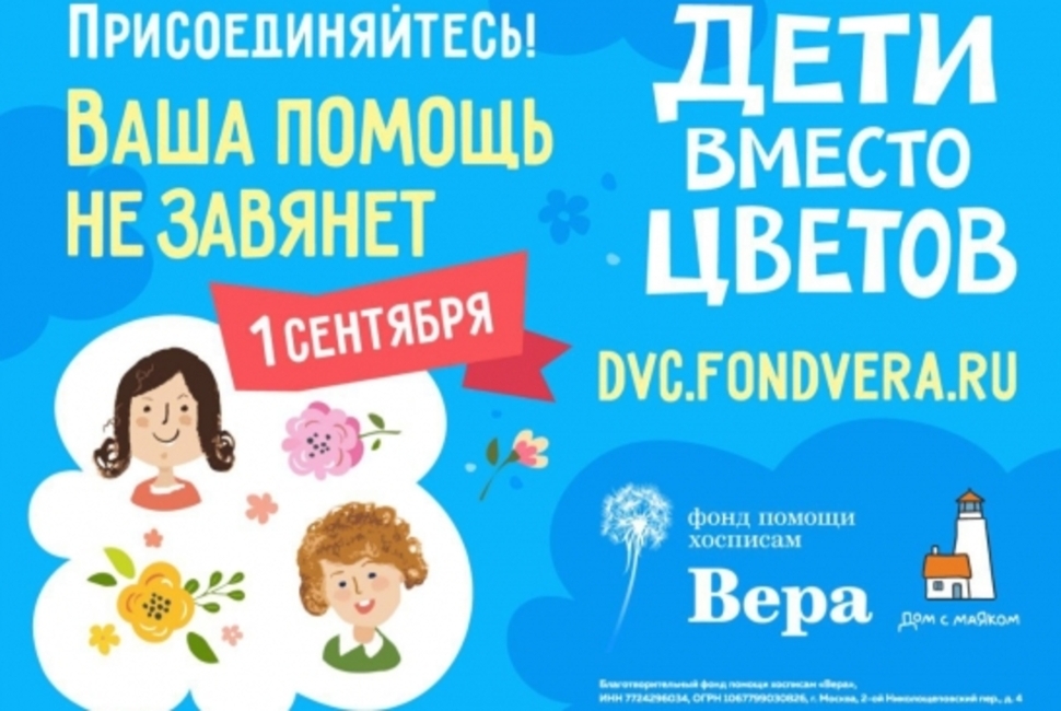 Фонд помощи хосписам «Вера» и детский хоспис «Дом с маяком» в 11-й раз проводят акцию «Дети вместо цветов»