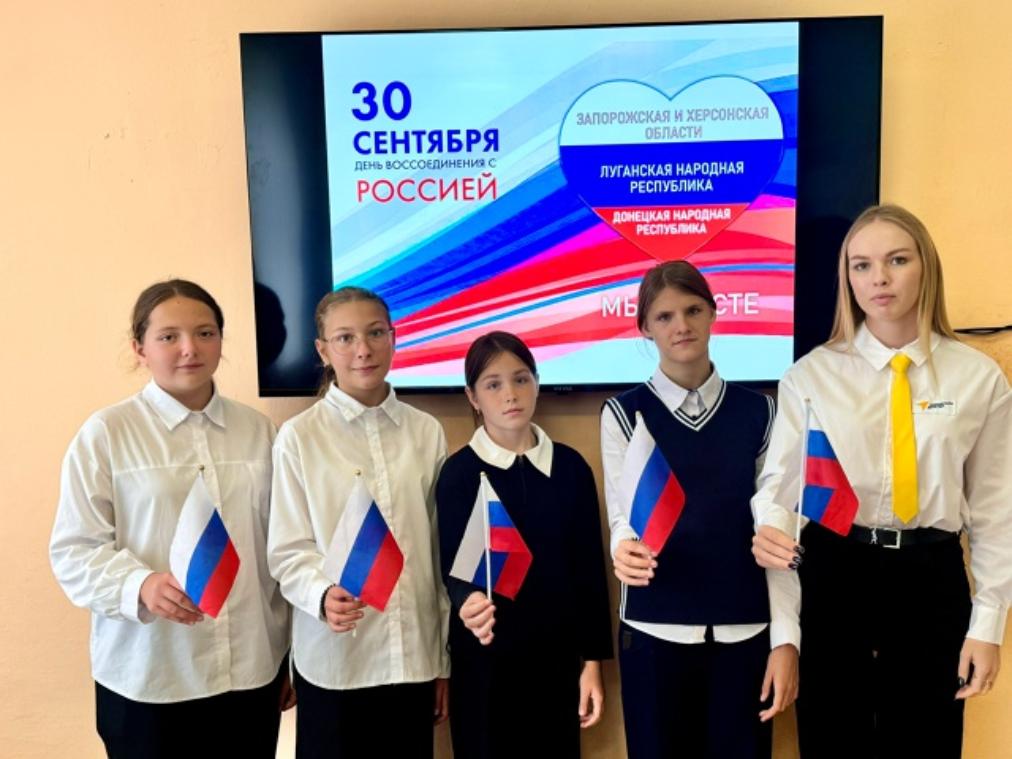 Начиная с 2023 года, 30 сентября в России отмечается День воссоединения Донецкой Народной Республики, Луганской Народной Республики, Запорожской области и Херсонской области с Российской Федерацией. В рамках Дня единых действий советники директоров по воспитанию района провели настольную игру «Возвращение истории». В ходе игры, обучающиеся по очереди, переворачивали две понравившиеся карточки текстом вверх. Если текст совпадал, игрок должен был найти соответствующий исторический факт среди карточек-пояснений. Обучающиеся пополнили свои зн