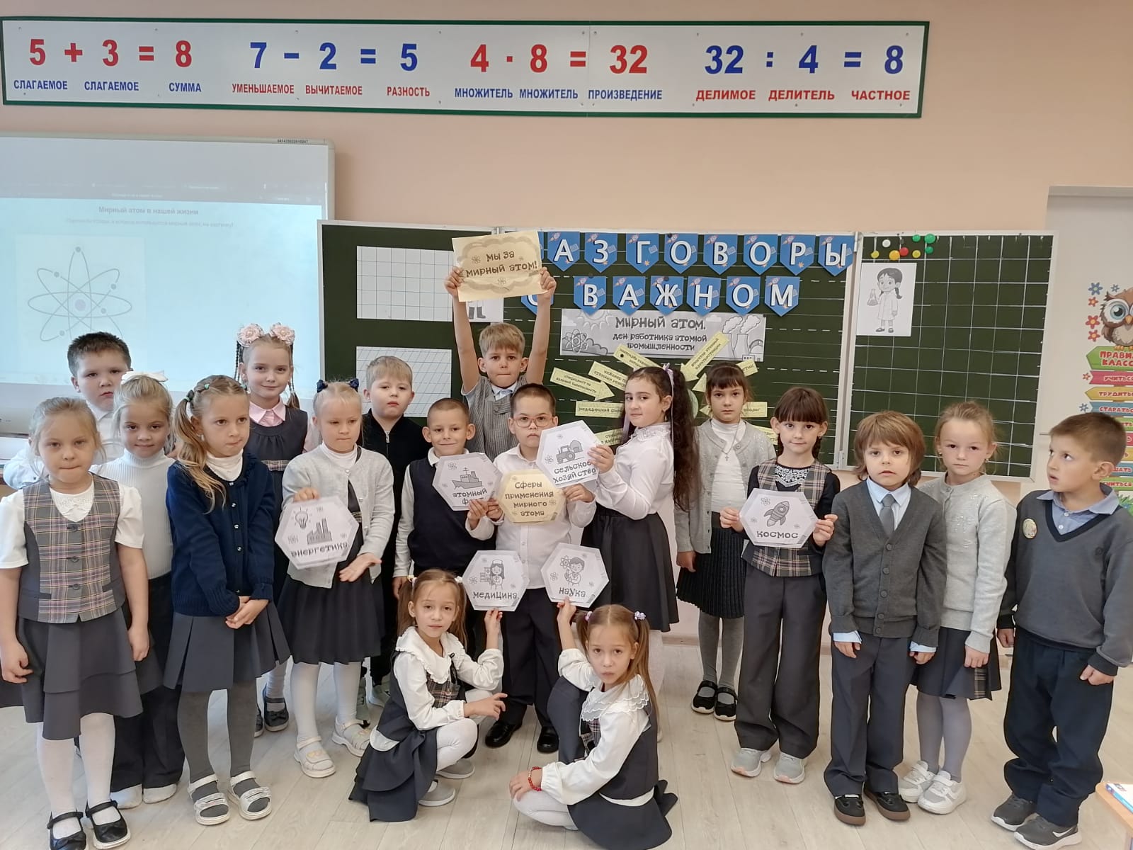 22 сентября 2025 года школах района состоялся очередной урок из цикла «Разговоры о важном». Он прошел в преддверии Дня работников атомной промышленности. Его задачей стало формирование представлений об атомной энергии и ее использовании в мирных целях, а также развитие интереса к изучению перспективных направлений в этой области. К окончанию урока у учащихся начальных классов сложилось представление, как огромная энергия маленького атома и атомные технологии помогают освещать и согревать наши дома, лечить людей, развивать Арктику, осваивать Северный морской путь и даже открывают дорогу к звездам. Ученики 5-7 классов отправились в увлекательное виртуальное путешествие по миру атомных технологий и узнали, над чем российские атомщики трудятся сегодня. Об истории становления и ключевых достижениях российской атомной отрасли узнали учащиеся 8–9 классов. Кроме того, они говорили о профессиях, связанных с атомной отраслью, таких как физик-ядерщик, радиолог, капитан атомного ледокола и других. В 10–11 классах с обучающимися обсудили перспективные направления атомной отрасли. Основной акцент урока был сделан на том, чтобы развивать интерес к дальнейшему изучению естественных наук и технологий, а также вопросов и проблем, связанных с атомной отраслью и атомной энергетикой.